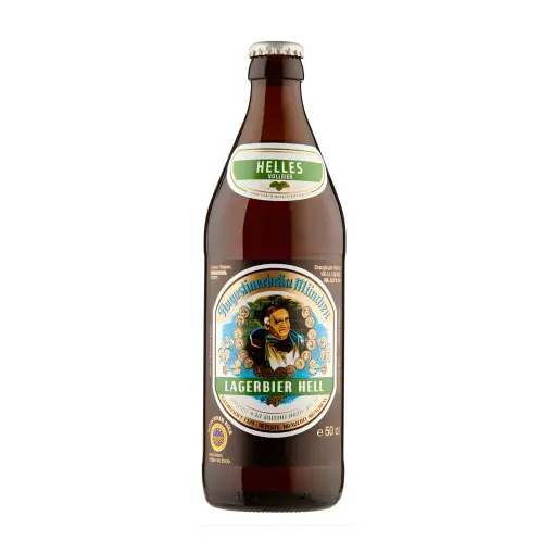 Birra lager hell tedesca dal gusto equilibrato e fresco, prodotta con malto d’orzo selezionato. Ideale da servire ben fredda per un'esperienza autentica.