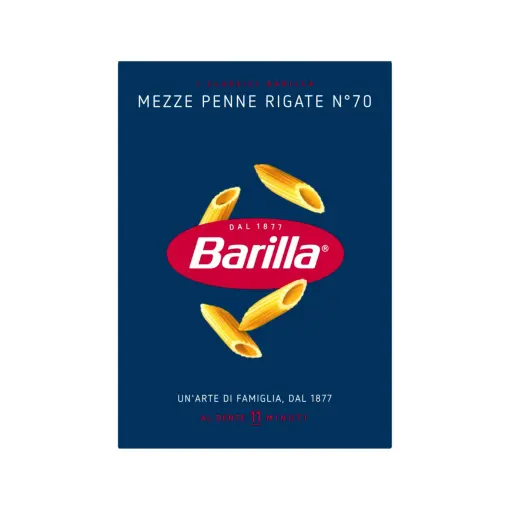 Le Mezze Penne Rigate n.70 Barilla sono realizzate con semola di grano duro di alta qualità e acqua. Il formato corto e rigato consente di trattenere al meglio i condimenti, rendendole perfette per sughi a base di carne, verdure o formaggi. Una pasta equilibrata e resistente in cottura, adatta sia alla cucina quotidiana che all’utilizzo professionale.