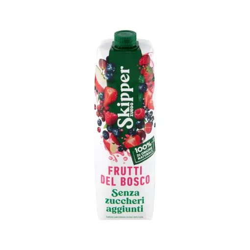 Succo ai frutti di bosco Skipper Zuegg senza zuccheri aggiunti, ottenuto da succhi e puree di frutta, dal gusto intenso e naturale, ideale a colazione.