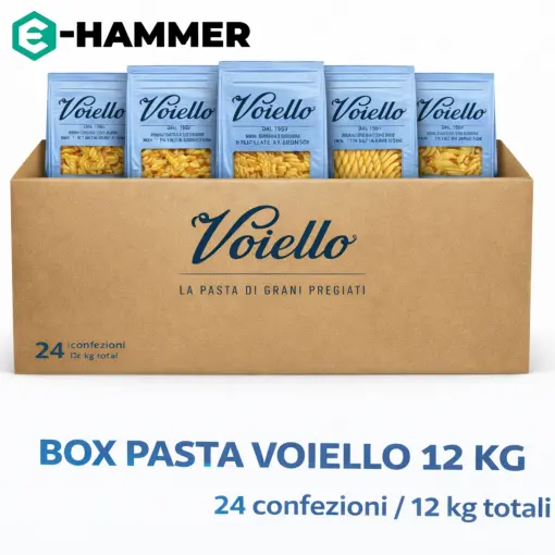 Box assortita di pasta Voiello, ideale per famiglie, ristorazione o scorta dispensa.