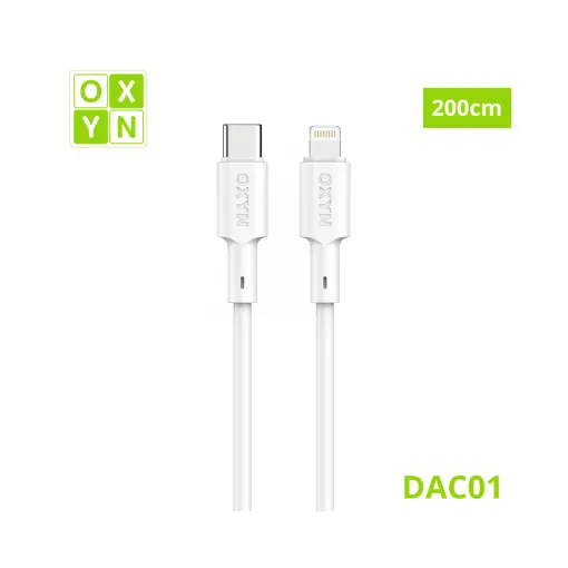 Il cavo OXYN DAC01 Type-C a Lightning da 200 cm è progettato per garantire una ricarica stabile e una trasmissione dati affidabile.