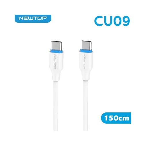 Il cavo Type-C Type-C Newtop CU09 Bluline da 150 cm è progettato per garantire ricarica veloce e trasferimento dati affidabile su dispositivi USB-C.