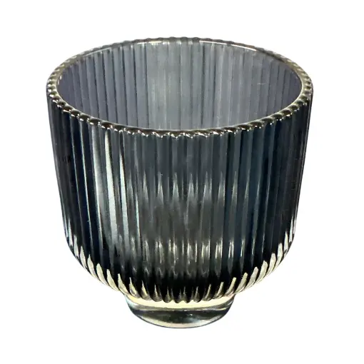 Brigitte Home Set 4 Portacandele In Vetro Rigato Fumé