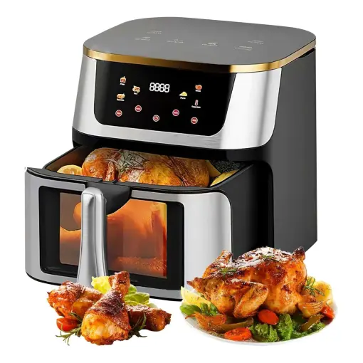 Friggitrice ad aria extra large da 15 litri con comandi touch e display digitale, ideale per famiglie numerose e preparazioni abbondanti con cottura sana senza olio.