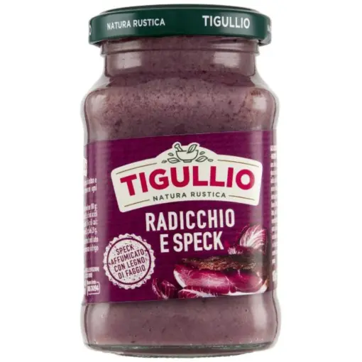 Il Sugo Tigullio Radicchio e Speck, disponibile nel pratico vasetto da 185 g è un condimento pronto da gustare che unisce la delicatezza amarognola del radicchio alla nota affumicata e saporita dello speck, creando un equilibrio perfetto tra gusto deciso e cremosità.