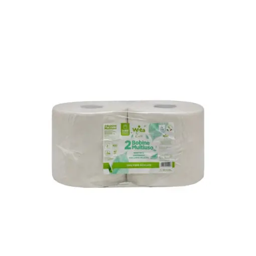 Bobine multiuso Wita Eco a 2 veli, resistenti e altamente assorbenti, ideali per pulizia domestica e professionale, idonee al contatto con alimenti secchi.