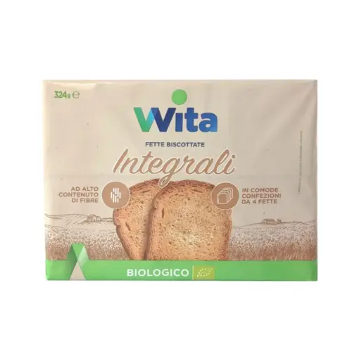 Fette biscottate integrali biologiche ricche di fibre, ideali per la colazione quotidiana. Croccanti, leggere e perfette con confetture o creme.