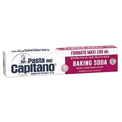Pasta del Capitano Baking Soda è il dentifricio formulato con bicarbonato per un’azione purificante quotidiana.